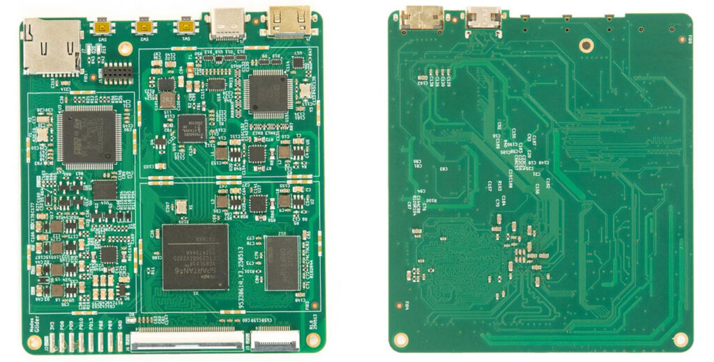 • Microcontroller: STM32H750 (USB communication, firmware upgrades, standalone apps)